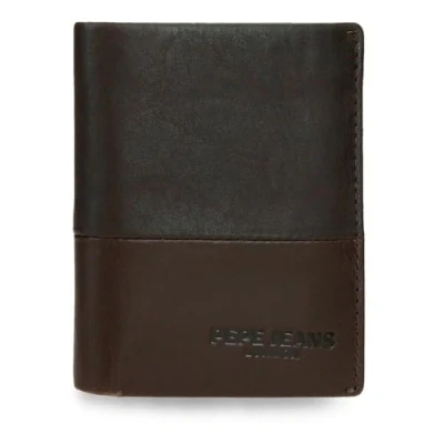 Pepe Jeans Ithaca Vertical Wallet Brown 8.5x10.5x1cm Leather by Joumma Bags