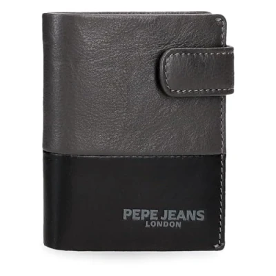 Pepe Jeans Ithaca Vertical Wallet with Click Closure Grey 8.5x10.5x1cm Leather by Joumma Bags