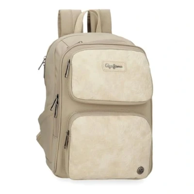 Pepe Jeans Jana Laptop Backpack 13.3 Inch Beige 25x37x10cm Polyester and PU 9.25L by Joumma Bags, Beige, One Size,