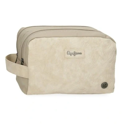 Toiletry bag 26 cm x 16 cm x 12 cm made of polyester and faux leather details. Two compartments and three inner pockets, one of them with zip, to keep toiletries and beauty products neatly organized. Handle for convenient hanging or carrying by hand By Joumma Bags