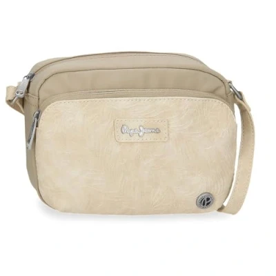 Pepe Jeans Jana Shoulder Bag Beige 21.5x15x5 cm Polyester with Faux Leather Details by Joumma Bags, Beige, One Size,