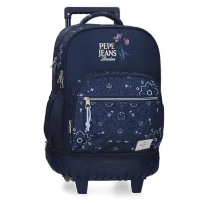 Pepe Jeans Lenay Backpack Compact 2 Wheels Navy 32x43x21cm Polyester 29L by Joumma Bags