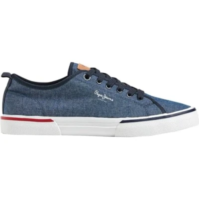 Pepe Jeans Kenton Smart 22 Chambray Sneaker in a stylish Blue hue Material: Made of breathable Mesh and durable Canvas, perfect for Sports Size & Fit: Available in 6 UK size, with a medium width and lace-up closure Comfort: Features a Rubber insole and Rubber sole, providing Moderate cushioning Occasion: Ideal for Casual (Smart Casual) events, including Weddings Design: Low Top, Closed Toe Sneaker with a Flat heel, enhancing your style quotient