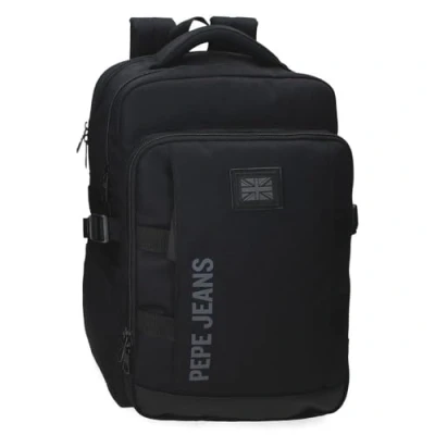 Pepe Jeans Matlock Laptop Backpack 15.6 Inch Black 28x40x16cm Faux Leather and Polyester by Joumma Bags