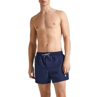 AmazonSolid swim trunk with a round logo rubber patch made with quick-dry fabric Fully elasticated with inside contrast waistband and eyelets, branded drawstring and inside pouch Featuring a peached hand feel