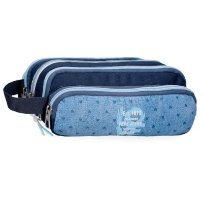 Pepe Jeans Noni Denim Pencil Cases, Shoulder Bags, Blue and Pink, Organize Carry Pencils Pens, Various Compartments by Joumma Blue, One Size, Case Five