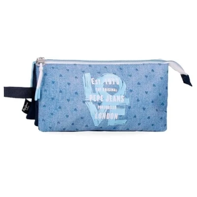 Pepe Jeans Noni Denim Triple Pencil Case Blue 22x12x5cm Polyester by Joumma Bags, Blue, One Size,