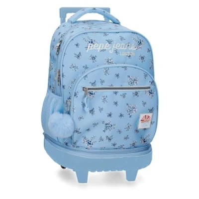 Pepe Jeans Olivia Backpack Compact 2 Wheels Light Blue 32x43x21cm Polyester 29L by Joumma Bags