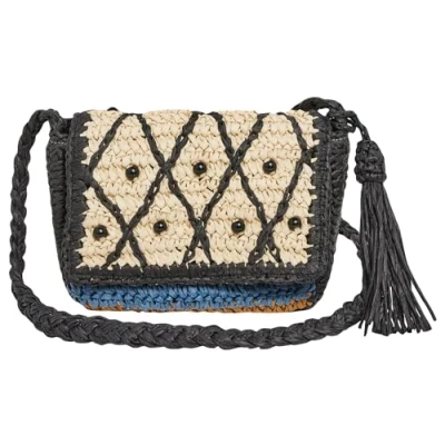 Straw crossbody bag with a flap Shoulder strap Magnetic closure Inner pocket
