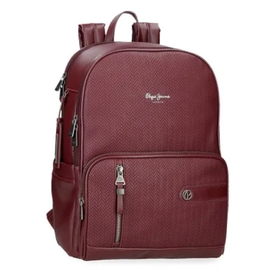 Pepe Jeans Sprig Casual Backpack Made of Faux Leather, Wide Adjustable Shoulder Straps, Front Pocket by Joumma Bags, Sac A Two, One Size, Bordeaux