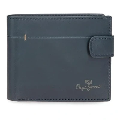 Pepe Jeans Staple Horizontal Wallet with Click Closure Blue 11 x 8.5 1 cm Leather, Blue, One Size,