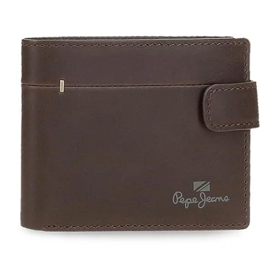 Pepe Jeans Staple Horizontal Wallet with Click Closure Brown 11 x 8.5 1 cm Leather, Brown, One Size,