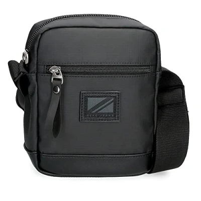 Pepe Jeans Straps Black Shoulder Bag 15x19,5x6 cm Polyester with Synthetic Leather details