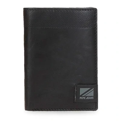 Pepe Jeans Topper Vertical Wallet with Purse Black 8.5 x 11.5 1 cm Leather, Black/White, One Size, Coin