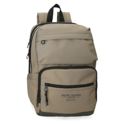 Pepe Jeans Waltford Casual Laptop Backpack 13.3 Inch Beige 25x37x12cm Polyester with Faux Leather Details 9.25L by Joumma Bags