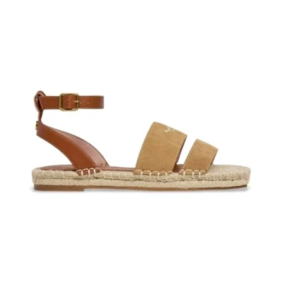 Auri Street W flat jute sandal made in cow suede leather with double strap, classic logo on vamp Ankle fastening through metallic buckle, metal "P" monogram pin on back Natural jute rope outsole with heavy stitching around and printed classic logo on footbed