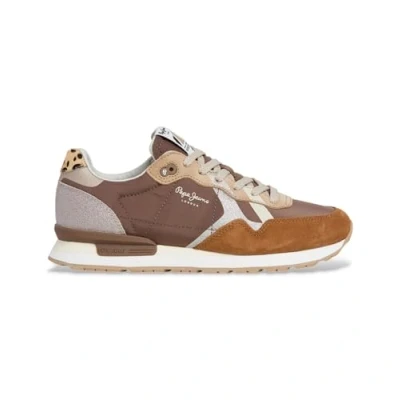 Pepe Jeans Women's BRIT Glitter W Sneak, Brown Camel Beige, 7 UK
