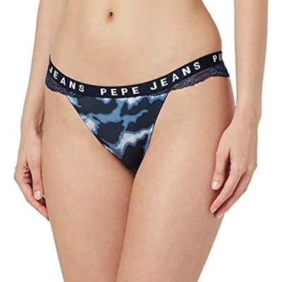 Pepe Jeans Women's Camo Thong Bikini Style Underwear, Blue (Navy), S