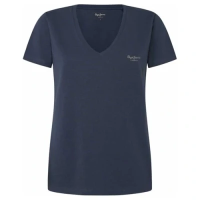 Pepe Jeans Women's Fiore V Neck T Shirt, Blue (Washed Navy Blue), S