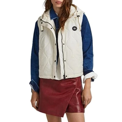 Pepe Jeans Women's Jane Vest Jacket, White(Mousse White), S