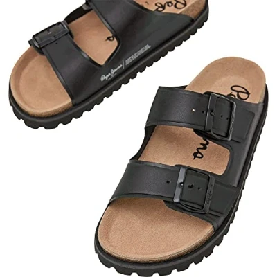 Pepe Jeans Women's Urban Sandal Basic Cork W Flat, Black, 4 UK