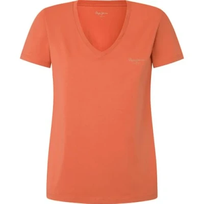 Pepe Jeans Women's Fiore V Neck, T Shirt, Orange, XL