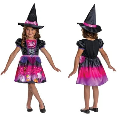 IDEAL FOR HALLOWEEN: With a spooky witch-inspired design, this Peppa Pig fancy dress is ideal for Halloween! Featuring a fun Halloween print on the skirt and a witches hat OFFICIAL PEPPA PIG: This adorable Peppa Pig fancy dress is officially licensed by Disguise, featuring quality construction and a detailed design perfect for any Peppa Pig fan INCLUDES CUTE WITCH HAT: Included with this Peppa Pig costume for girls is an adorable witches hat, featuring super cute pink ribbon detailing for the perfect Peppa Pig final touch! DETAILED DESIGN: With puff sleeves, detailed bodice and printed skirt, this Halloween Peppa Pig costume is perfect for your little one to transform into a spooky Peppa Pig! SIZE RANGE: Available in sizes 2 Years, 3-4 Years and 4-6 Years. Includes Peppa Pig Witch Dress and Peppa Pig Witch Hat with Pink Ribbon. Easy and comfortable to wear, Manufacturer: Disguise