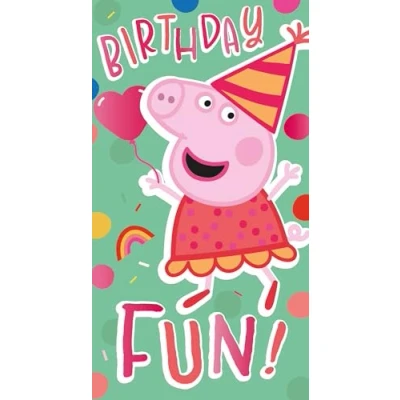 THEME: Peppa Pig themed birthday card featuring vibrant, playful illustrations perfect for young fans of the beloved series DIMENSIONS: Large 22.86 cm x 12.7 cm size providing ample space for your personal birthday message and greetings DESIGN: Decorative pattern with cheerful multicolour illustrations that capture the fun and excitement of Peppa's adventures VERSATILITY: Blank interior allows for personalised messages, making it an ideal choice for a child's special celebration QUALITY: Professional craftsmanship by Danilo Promotions Ltd ensures a premium finish worthy of the occasion