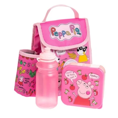 Peppa Pig Kids Lunch Bag Set with Bottle and Containers Insulated 3 Pcs for Girls First School BPA Free Leakproof Travel, School, Pink