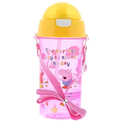 Official Peppa Pig Snack & Sip Bottle: Our cute Peppa Pig bottle design will keep your little one reaching for their water. The 100% BPA free non-toxic water bottle has an easy-to-use twist lid pop up drinking straw to help children stay hydrated throughout the day. Great for everyday use like for school, sports, after school clubs, days out and holidays. A lunch bag, tableware set and cutlery set are available as part of our official UK Peppa Pig merchandise. Ideal for little hands: The kid-friendly pop-up lid function with straw makes it simple for children to sip without spilling water everywhere. Simply push the lid down to close it and avoid leakage. The bottle has a depatchable carry strap so children can transport it easily. With the water capacity is 400ml and the bottle lightweight, it’s great for kids to take to school or on walks where they can carry their drink and snacks like a grown up. Ensure your kid stays hydrated while away from home: Keep your child's thirst at bay during school, club activities or on trips out with the family. The water bottle fits most drinks holders for bikes and cars as well as standard backpack nets or pockets, so your kid's drink is always in arm's reach. Add ice or infuse your kid’s favourite fruit in this wide neck water bottle so your child's drink is extra refreshing. Hardwaring & easy to clean: Our Peppa Pig bottles are made of durable polypropylene (PP) plastic. Built with a rigid internal straw, this straw can be detached for cleaning with a narrow bottle brush. The bottle width is 8.5cm with a height of 20cm, and the neck of the bottle is wide enough for grown-up hands when cleaning with a bottle brush after the school run. Healthy snacks on the go: The base screws on and off to store fruit or vegetable snacks and has 140ml capacity. Not suitable for hot or carbonated drinks. Rinse & dry before use. Hand wash only. Not suitable for children under 36 months as small parts may present a choking hazard.
