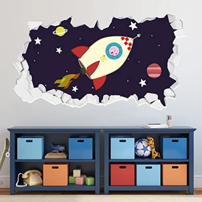 Peppa Pig Wall Sticker and George Space Rocket Broken Decal Kids Art (120cm Width x 65cm Height)