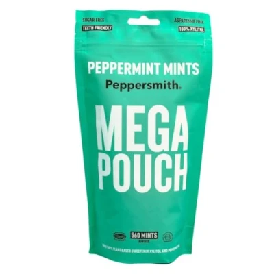 Peppermint Mints Sugar Free 100% Plant Based Xylitol Fresh Breath Benefits Oral Health, Reduce Plaque, Kills Bacteria Aspartame Mega Pouch 560 By Peppersmith