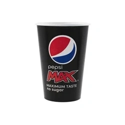 Patterned. Double PE coated Pepsi Max branded cup. Suitable for cold drinks. Pepsi Max design. Condensation resistant. Eliminate the need for a straw with the Huhtamaki RPET strawless cold cup lid - Sold separately item code: HC199.