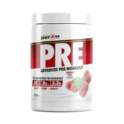 Per4m Pre Workout Powder 570g Intense Pump, Sustained Energy and Mental Focus with L Citrulline, Beta Alanine & Caffeine Added Hydration (Cherry Fizz)