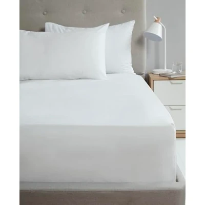 Percale Fitted Sheet 10" (25cm) 180TC Polycotton Soft Durable White Double