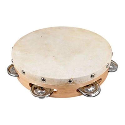 Great value tambourine 8" diameter Wood shell Natural skin head 6 pairs of jingles