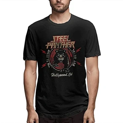 perdu Steel Panther Men's Comfortable Short Sleeve Shirts Crew Neck Personality Fashion T Shirt S Black L
