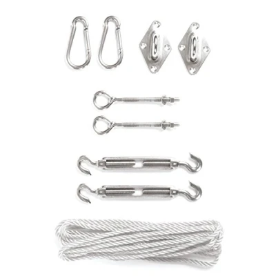 Shade sail connection kit Made out of stainless steel Includes: turnbuckle with 2 hooks, eye bolt, pad-eye, snap hook and nylon guy rope. Designed to be easy to store Designed to be easy to use, Weight: 1.763698096 pounds, Manufacturer: Perel