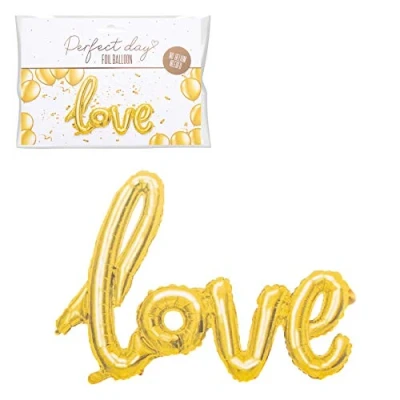 Elevate your wedding decor with our Perfect Day Love Gold Foil Balloon! Create an unforgettable celebration with this 45cm x 55cm balloon, complete with a straw for easy inflation and a resealable tab for convenience.. 1 x Perfect Day Love Gold Foil Balloon 45cm x 55cm. Approximate measurements 55cm x 45cm. Retail pack size 21.5cm x 15cm