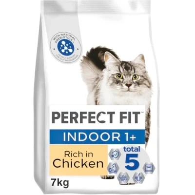 Perfect Fit Indoor Adult 1+ Complete Dry Cat Food for Cats Aged Years, Rich in Chicken, 1 Bag (7 kg)