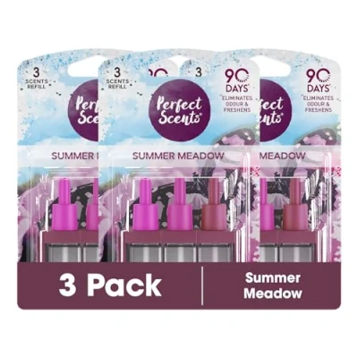 Summer Meadow - a beautiful floral scent perfect to bring summer to your home, scent of the blooming wild flowers. The Perfect Scents 3Volution electric air freshener refill continuously eliminates persistent odours thanks to Odourclear technology up to 90 days of freshness 1 Pack Contains 3 Air Freshner Refill Available in 3, 6 and 12 Packs
