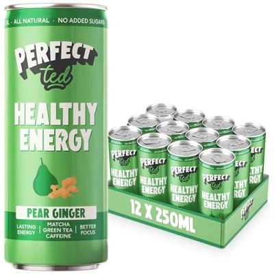 Perfect Ted Healthy Energy Drink Pear Ginger Box of 12 x 250ml Cans Clean Gift Set All Natural Sustained 30KCAL 80MG Caffeine Per Can