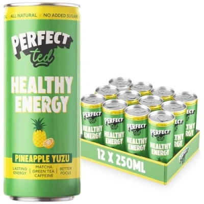 Perfect Ted Healthy Energy Drink Pineapple Yuzu Box of 12 x 250ml Cans Clean Gift Set All Natural Sustained 13KCAL 80MG Caffeine Per Can