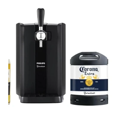 The PerfectDraft Black Phillips machine is a counter-top machine that chills six-litre kegs of beer down to a precise 3°C. This package includes 1 PerfectDraft Black beer dispenser and 1 6 litre keg of Corona Extra beer, Alc 4.5% Vol. Fresh, cold draught beer at home: the PerfectDraft Philips is a beer dispensing system designed for you to enjoy a glass of self-poured beer in the comfort of your home; For the freshest possible taste: LCD display with temperature and volume indication shows when your beer is at the target temperature of 3°C (12-hour cooling period that is guaranteed stable performance in temperatures up to 31°C, beer stays fresh and bubbly for up to 30 days) Discover the perfect tap: Designed to maintain quality and pour the beer the way the brewer intended - with a real tap handle