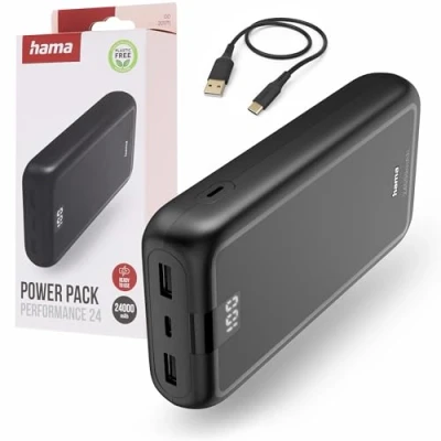 Power bank for fast charging: use 200 hours longer with one charge, e.g. Galaxy S21+, fully charged in 13 hours on the USB C port power pack Mobile battery with display: LED display in percent how much charge is available - from 1 to 100%, 1 input (USB-C), 3 outputs (1x USB-C, 2x USB-A) Certified additional battery: certified cells for the highest quality and safe charging - overcharging, overvoltage, overheating and short circuit protection, fast charge power bank small but strong and safe External mobile phone battery maximally compatible: for all mobile phones, tablets and other devices, e.g. smartwatch, tablet, digital camera, Bluetooth headphones and speakers, optimised charging process protects the battery of mobile phones etc. Box contents: 1x Powerpack "Performance 24" (small and lightweight for hand luggage, travel and airplane 7.55 x 15.2 x 2.75 cm, 463 g), 1 x USB-A - USB-C charging cable (0.30 m), 1 x user manual (English language not guaranteed)
