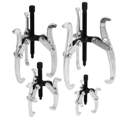Performance Tool W134DB 3 Jaw Gear Puller Set, 4 Piece Set (Sizes: 3, 4, 6 and 8 Inch), with Reversible Design for Vehicle Maintenance Repair, Drop Forged Steel, Chrome Plating