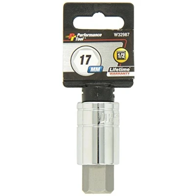 STRONG AND DURABLE: Made with high-quality Chrome Vanadium Alloy Steel, the Performance Tool W32987 1/2 Drive 17mm Hex Bit Socket is built to last and withstand heavy use. CORROSION-RESISTANT: The polished nickel chrome plated finish of this socket resists corrosion and rust, ensuring it remains in top condition even after years of use. TAMPER-RESISTANT DESIGN: The recessed bit end of this socket makes it ideal for use with tamper-resistant fasteners, providing added security and peace of mind. VERSATILE APPLICATIONS: This 17mm Hex Bit Socket is suitable for a wide range of applications, including automotive repair, machinery maintenance, and DIY projects. LIFETIME WARRANTY: With a lifetime warranty, you can trust in the quality and performance of the Performance Tool W32987 1/2 Drive 17mm Hex Bit Socket, making it a reliable addition to your tool collection.