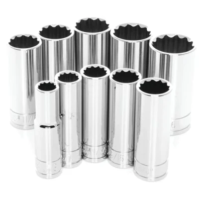 Performance Tool W38600 3/8 Inch Drive 12pt SAE Deep Wall Socket Set for Garages and Workshops, Chrome, 10 Pieces
