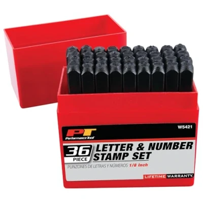 PERFORMANCE TOOL W5421 36 Piece 1/8" Steel Letter/Number Stamping Set with Handy Storage Box for Identification on Most Items