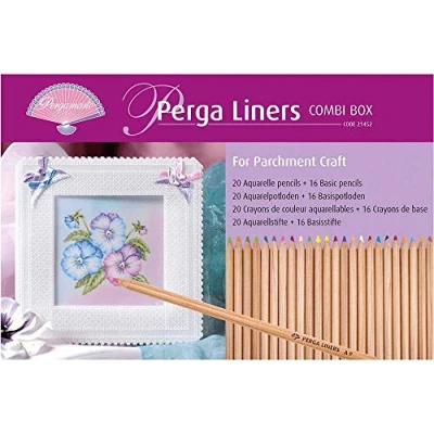The perga liners consist of a series of water colour pencils (A) and a series of basic pencils (B) For the wet technique, also called water colour technique, you first use the B-pencils and subsequently apply the colour of the A-pencils to the parchment paper using a damp brush For the dry technique you exclusively use the B-pencils